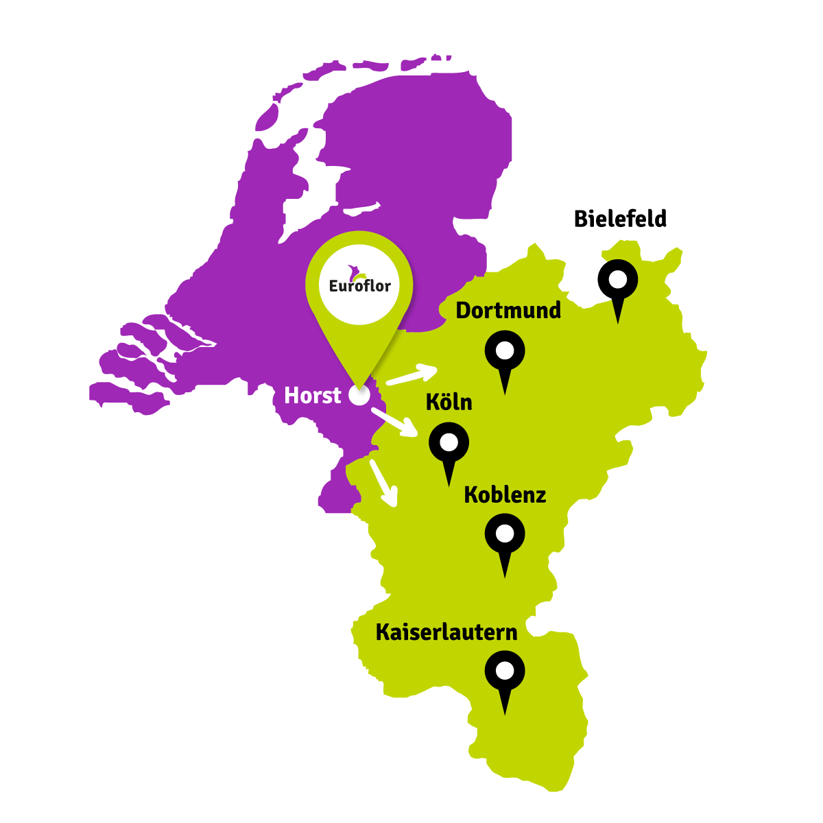 Mehrmals in der Woche beliefern wir unsere Kunden und versorgen sie mit frischen Blumen und Pflanzen. Die meisten unserer Kunden befinden sich in den deutschen Bundesländern Nordrhein-Westfalen und Rheinland-Pfalz.